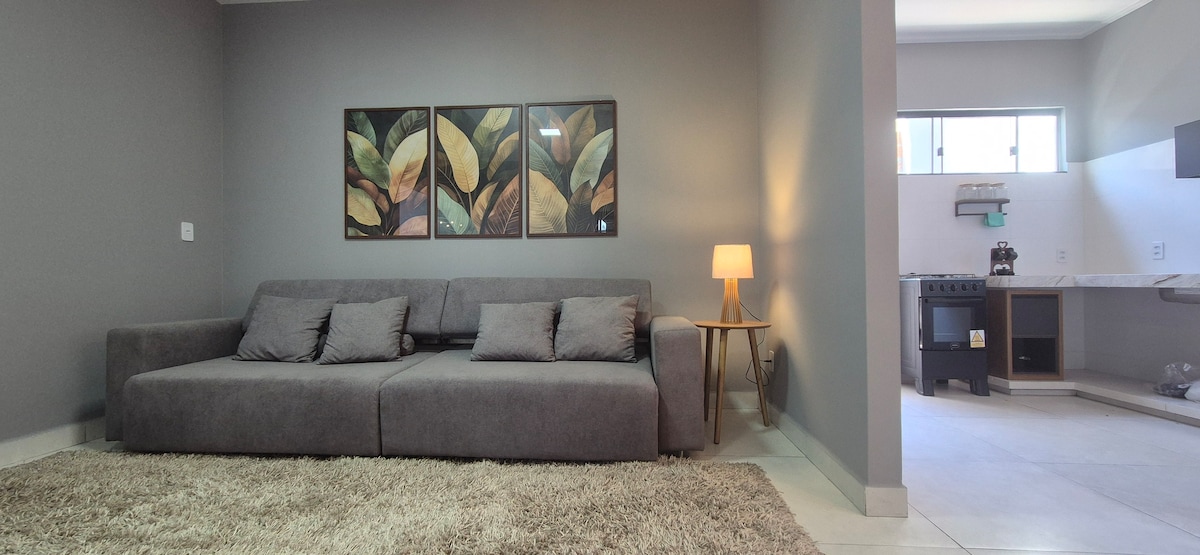 Nossa acomodação é única e tem um estilo próprio. Um ambiente super aconchegante e confortável que irá lhe proporcionar as melhores experiências. Apto composto por 2 quartos, 1 banheiro e sala conjugada com cozinha e varanda. Localizado totalmente no centro da cidade, a 80 metros do maior shopping, próximo a praças, supermercados e farmácias, restaurantes e bares. Perto de tudo que você precisa e podendo fazer tudo caminhando. Será uma grande satisfação para nós receber você!