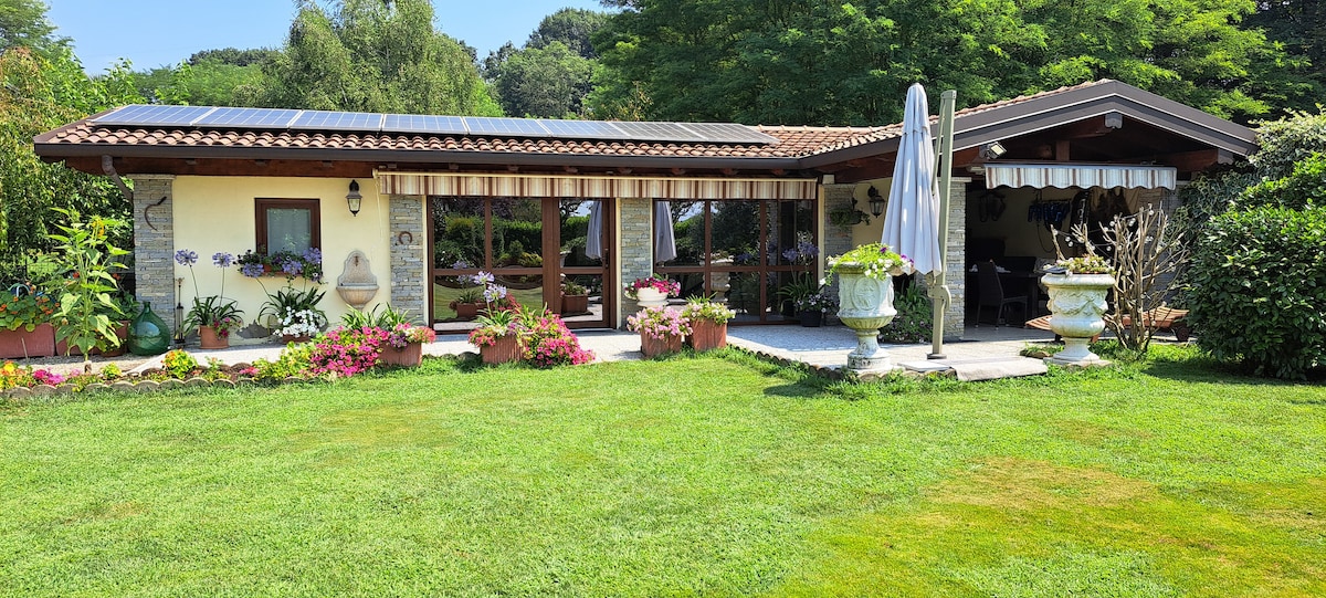 The guesthouse is situated up upon a hill inside a 8,000 m2 private park full of Azaleas, Rhododendrons, and huge Chestnut Trees an easy 15 min. drive from either Arona or Stresa. Lakeside beaches, excellent restaurants and shopping facilities are within the close vicinity by car. A huge natural reserve with peaks offering panoramic views of lakes and alps can be reached in a few minutes on foot. The guesthouse's 60 m2 ground-floor apartment has an arcade covered patio and its own gardens.