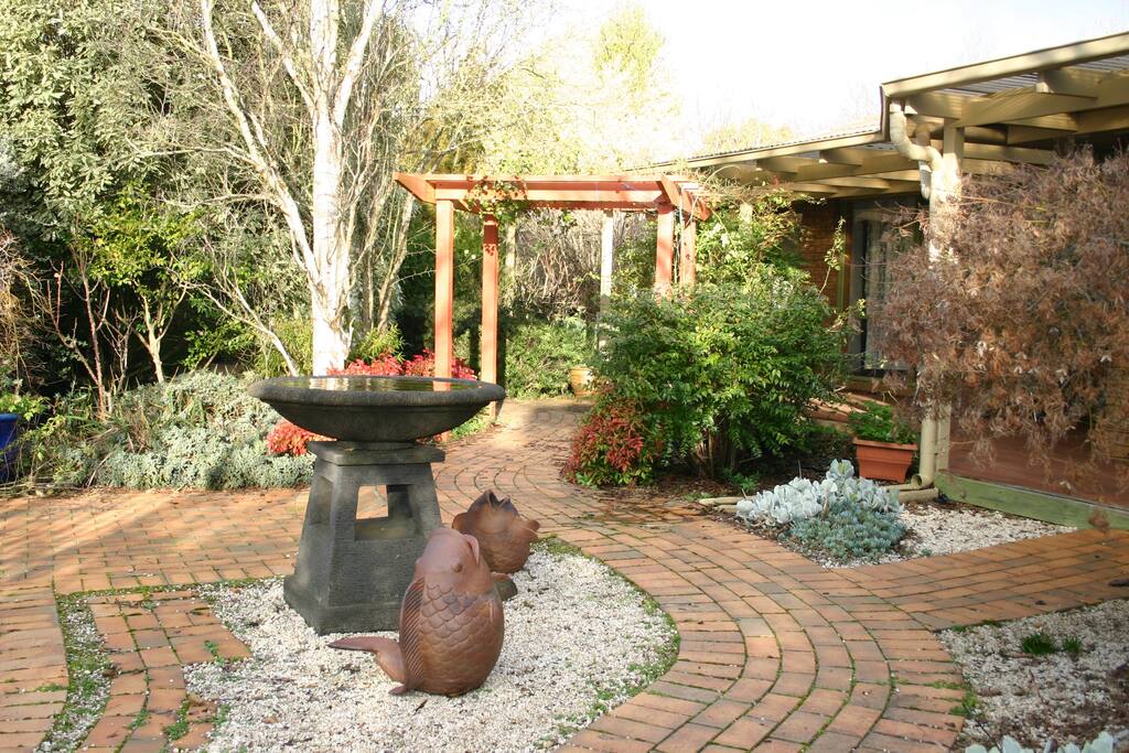 Millridge Park is set on 3 acres at the base of Mount Macedon and Honor Ave. in a picturesque setting with beautiful gardens to explore with a creek and ponds. The accommodation has it's own entrance and car park which leads into a fully self contained Studio. The bathroom is new with a spa bath and a separate large walk in shower. Separate New compact Kitchen with dishwasher, washing machine and dryer. It is a 10-15 minute walk to the Macedon Train Station, shops, Hotel and Restaurants.