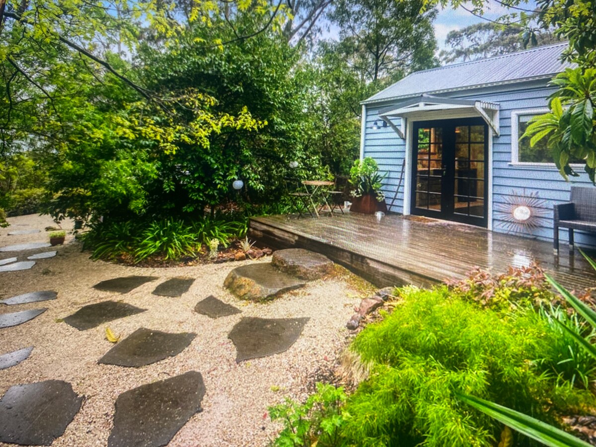Our atmospheric cabin sits amongst the gum trees, surrounded by birdsong. Named after the Gububurras (Kookaburras) that share the property with us, it's only ten minutes walk to the Mount Macedon village for coffee or a short drive to find wineries, village markets and forest walking trails. Alternatively in the cooler months you can curl up by the fire and read or enjoy the view from the terrace by the fire pit. The calming effect of Guruburra on our guests is almost immediately