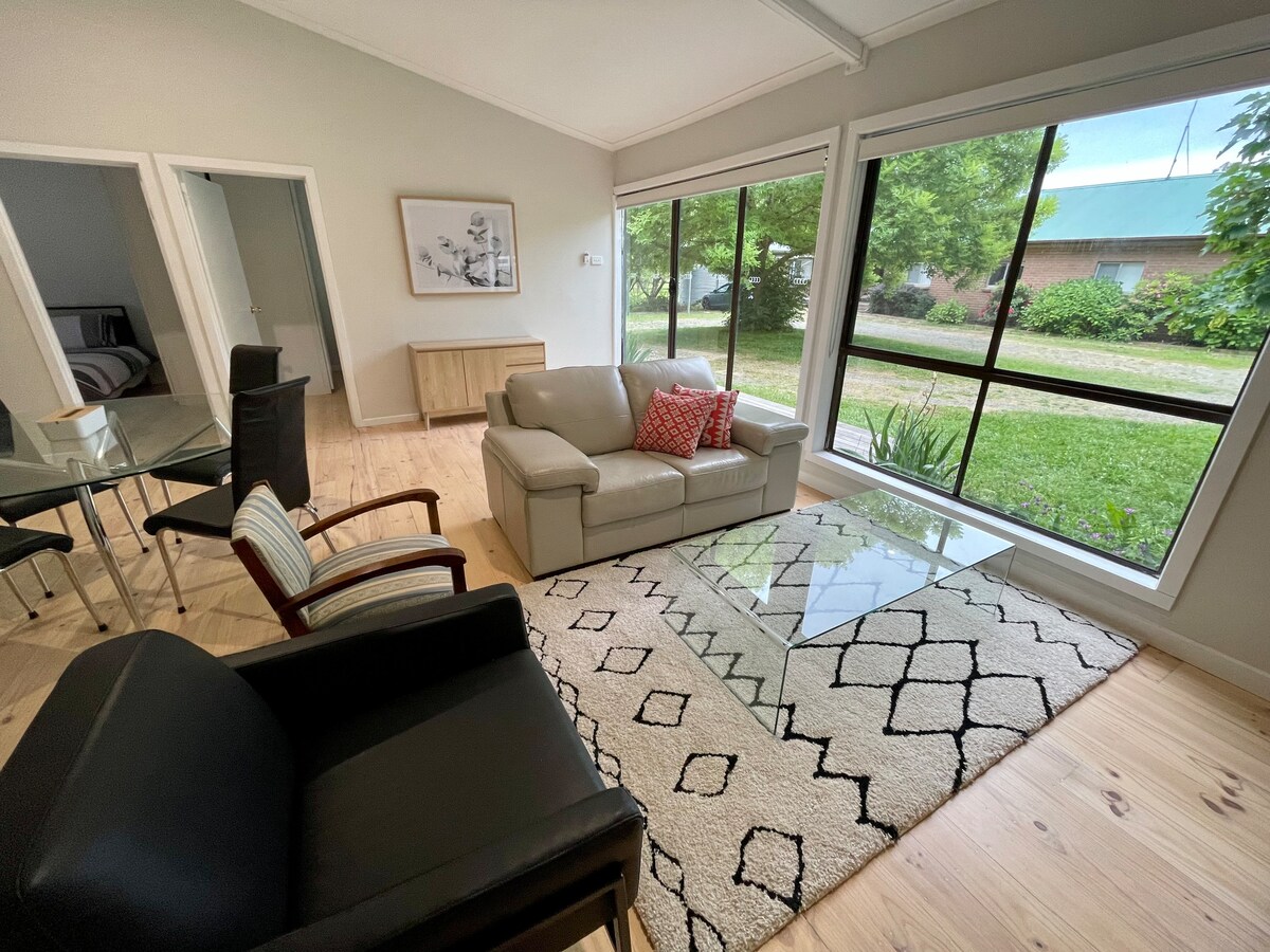 This unique place has a style all its own. A compact modern studio with everything you need for a weekend or overnight stay. Central location walk to a multitude of bars, cafes, restaurants, and tourist attractions. Set on a private residence separate from the main house, in a private garden setting. 2 Resident border collies and chooks also belong to the property providing a home away from home feel.