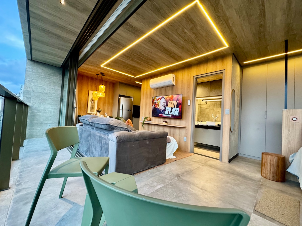 Apartamento Studio cheio de estilo, perfeito para sua estada em Maceió! Nosso 916 conta com uma varanda gourmet com vista mar incrível, além disso o edifício está a 50 metros da praia, piscina com borda infinita na cobertura e muitas comodidades perfeitas para você. Equipado com cozinha compacta equipada, ar condicionado, TV Smart de 32 polegadas, banheiro privativo, tábua e ferro de passar, telefone.