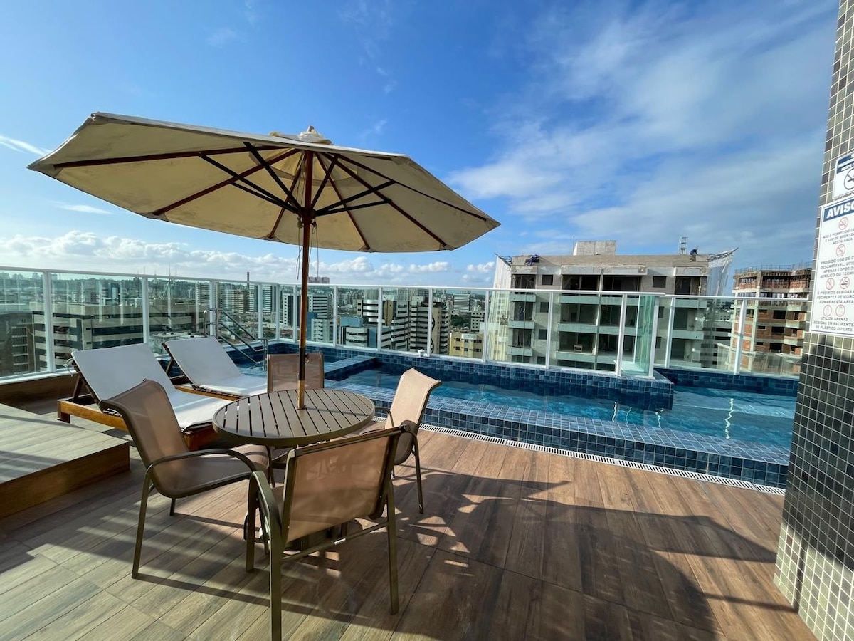 Viva uma experiência única em Maceió, hospedando-se a apenas 40 metros da Praia de Pajuçara, uma das mais belas e queridas do Nordeste. Nosso stúdio foi cuidadosamente projetado para oferecer conforto, elegância e uma sensação de bem-estar em cada detalhe. No topo do edifício, descubra o verdadeiro cartão-postal: uma piscina de borda infinita com vista panorâmica de 180º para o mar, perfeita para admirar o melhor pôr do sol de Maceió.