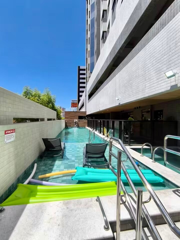 Apartamento incrível e moderno de quarto e sala, a poucos passos da orla mais bonita de Maceió . Próxima aos mais bonitos pontos turísticos, piscinas naturais , roda gigante, restaurantes, bares ,supermercados e feirinha do artesanato. Ideal para quem deseja aproveitar as melhores praias e gastronomia local e a vida noturna com conforto . Acomoda até 4 pessoas e conta com ar condicionado, Tv, Wi-Fi,cozinha completa, garagem,piscina,academia e brinquedoteca. O prédio fica a duas quadras da praia.
