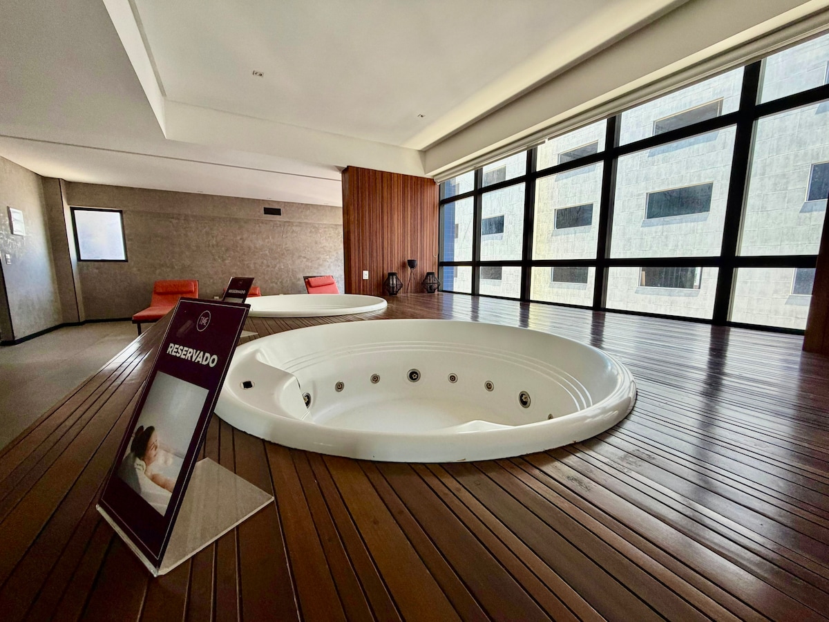 Staying at Wish 1203 means experiencing Maceió in comfort, with a prime location and an unforgettable view. Located in the sophisticated Wish Residence, in the heart of Jatiúca, the apartment is just one block from the beach, with a privileged view of the natural pools and the iconic Ponta Verde Lighthouse 🌅 Here, you wake up to the sea breeze, walk a few steps to the sand, and end the day enjoying a cinematic sunset.