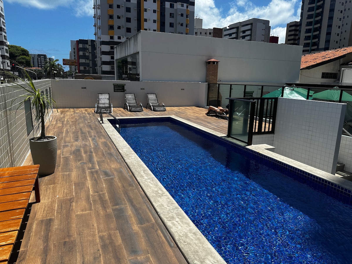 Apartamento quarto e sala completamente equipado! Cozinha com todos os utensílios, cooktop, forno, microondas, Netflix no quarto e na sala, internet 15Mb exclusiva, ar condicionado 11mb no quarto, ventilador na sala. Áreas comuns dispõe de piscina com borda infinita (na cobertura), academia, churrasqueiras. Tudo isso a 30 metros da Orla mais linda do país, considerada uma das mais lindas do MUNDO!