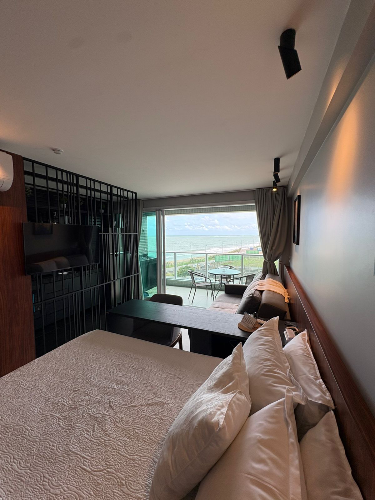 Studio a 3 minutos da praia. Basta atravessar a rua e em poucos passos seus pés já estarão na areia! Acomoda até 3 pessoas adultas ou um casal e dois filhos , com vista exuberante. O edifício oferece diversas comodidades: Piscina, academia, espaço kids, sala de estudos e vaga rotativa gratuitos. Tendo ainda sala de convenções, churrasqueira e sala de cinema para locação. O prédio conta com restaurante, lavanderia, padaria e loja de conveniência. Excelente localização, próximo a shoppings.