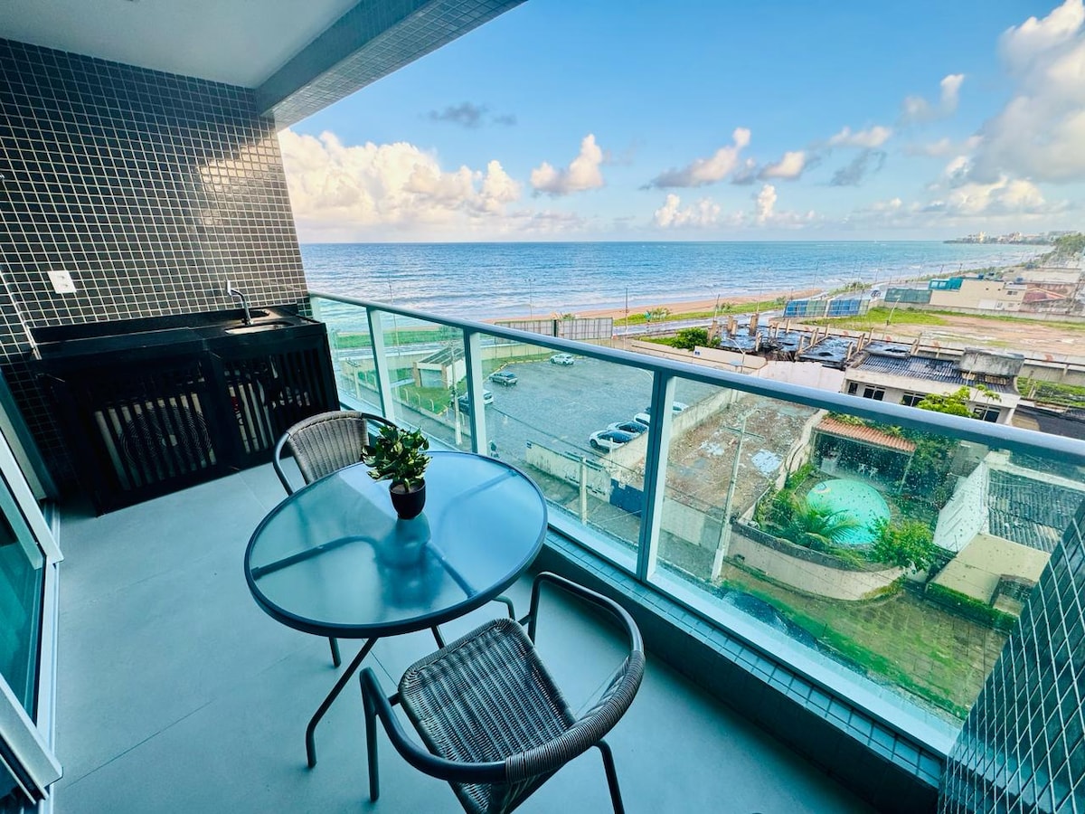 Este lugar único tem um estilo próprio e é muito aconchegante com 2 quartos, sendo um com vista mar, ar condicionado nos quartos e sala de estar, TV 75' na sala, cama Queen com Tv no quarto. Dispõe de outro qt cama king size e ar condicionado, na sala tem um sofá, ar condicionado, mesa de jantar, cadeiras, poltrona e uma tv de 75 polegadas, a cozinha dispõe de vários utensílios domésticos. Varanda para o mar, com cervejeira e excelente circulação da brisa do mar. Cinema Arte Pajuçara no pilotis.