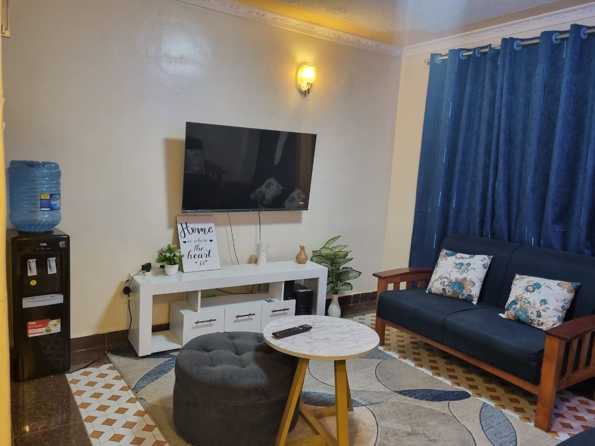 Premium, tastefully furnished 1-bedroom, 2-storey mini home, nestled in the peaceful and secure neighborhood of Syokimau. Just 15 minutes from Jomo Kenyatta International Airport (JKIA), we offer the perfect blend of tranquility and convenience for our guests. Enjoy the serenity of the home while soaking in the beauty of the peaceful lawn garden. Places of interest and travel times. Wilson Airport: 35min Train (SGR) station: 15min Gateway mall: 8min Nairobi National park: 21min