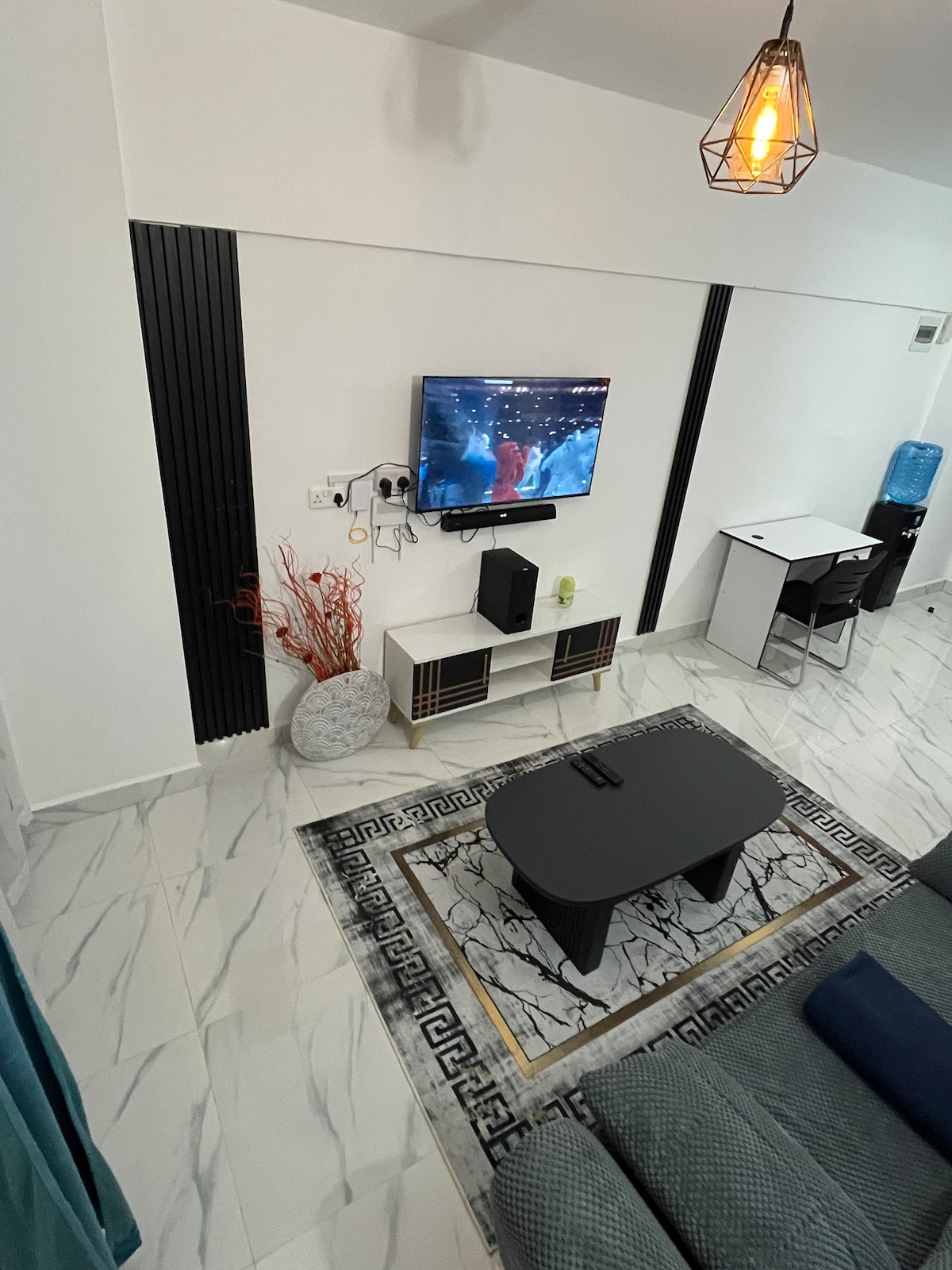 Welcome to your home away from home! This cozy & stylish 1BR on Lumumba Drive (Tsavo Royal Suburbs) is a short walk to TRM Mall, located right in Roysambu. Enjoy fast Wi-Fi, Netflix, self check-in, full kitchen, hot shower, lift, and free parking. Includes free airport pick-up and complimentary water, sugar & coffee. Safe, quiet, and ideal for work or rest. Karibu!