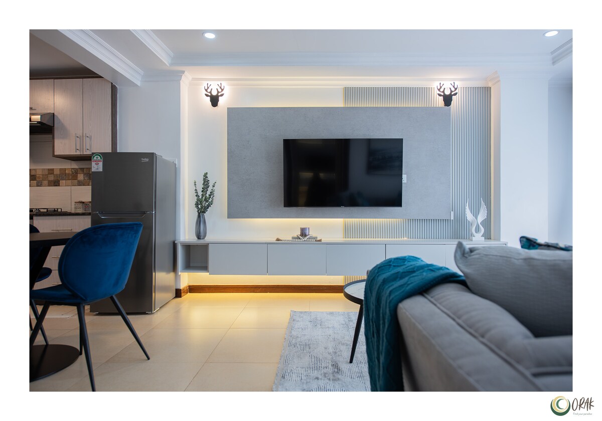 11th-Floor 1BR with Lift & Amazing City Views– 3 Mins to TRM, 10 minutes to Garden City Mall Discover your cozy, modern oasis on Lumumba Drive, Roysambu. Elevator access + panoramic city views from the 11th floor Prime location: - 3-min walk to Thika Road Mall (shops, dining, cinema) - Mini-mart + 24hr liquor store steps away Inside: - Queen bed + fresh linens - Fully equipped kitchenette (stove, microwave, fridge, utensils) - Smart TV + fast Wi-Fi - Cozy living area to unwind