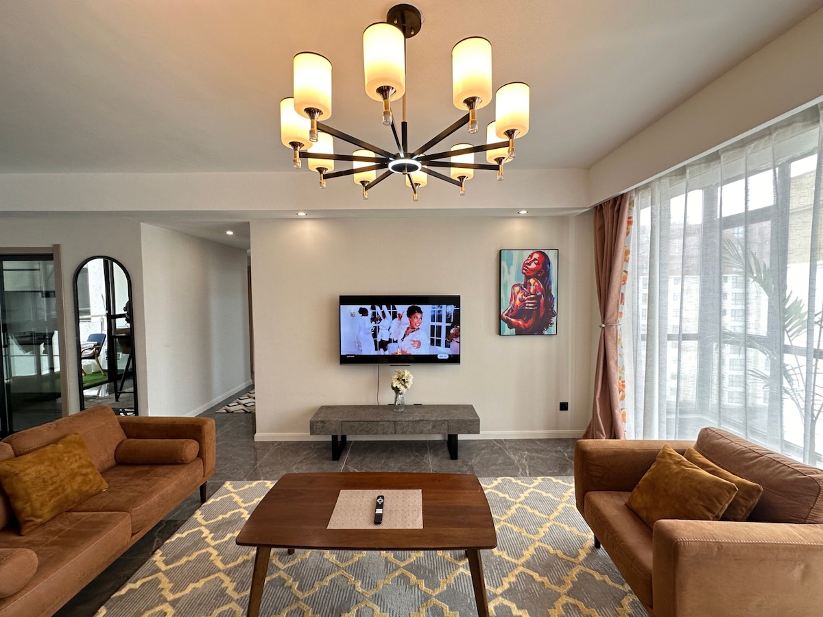 Book and indulge in our safari themed 3BR Suite near the JKIA and SGR. Every bedroom is carefully furnished to ensure the guest are comfortable during their stay and sleep. The living room is modern with a 40 Inches TV and a cozy sofa which leads to the balcony where you can catch landing flights to the airport. The kitchen is fully equipped with a cooker, fridge, coffee maker and a washer. Please ask for assistance should you need any assistance. All are welcome.