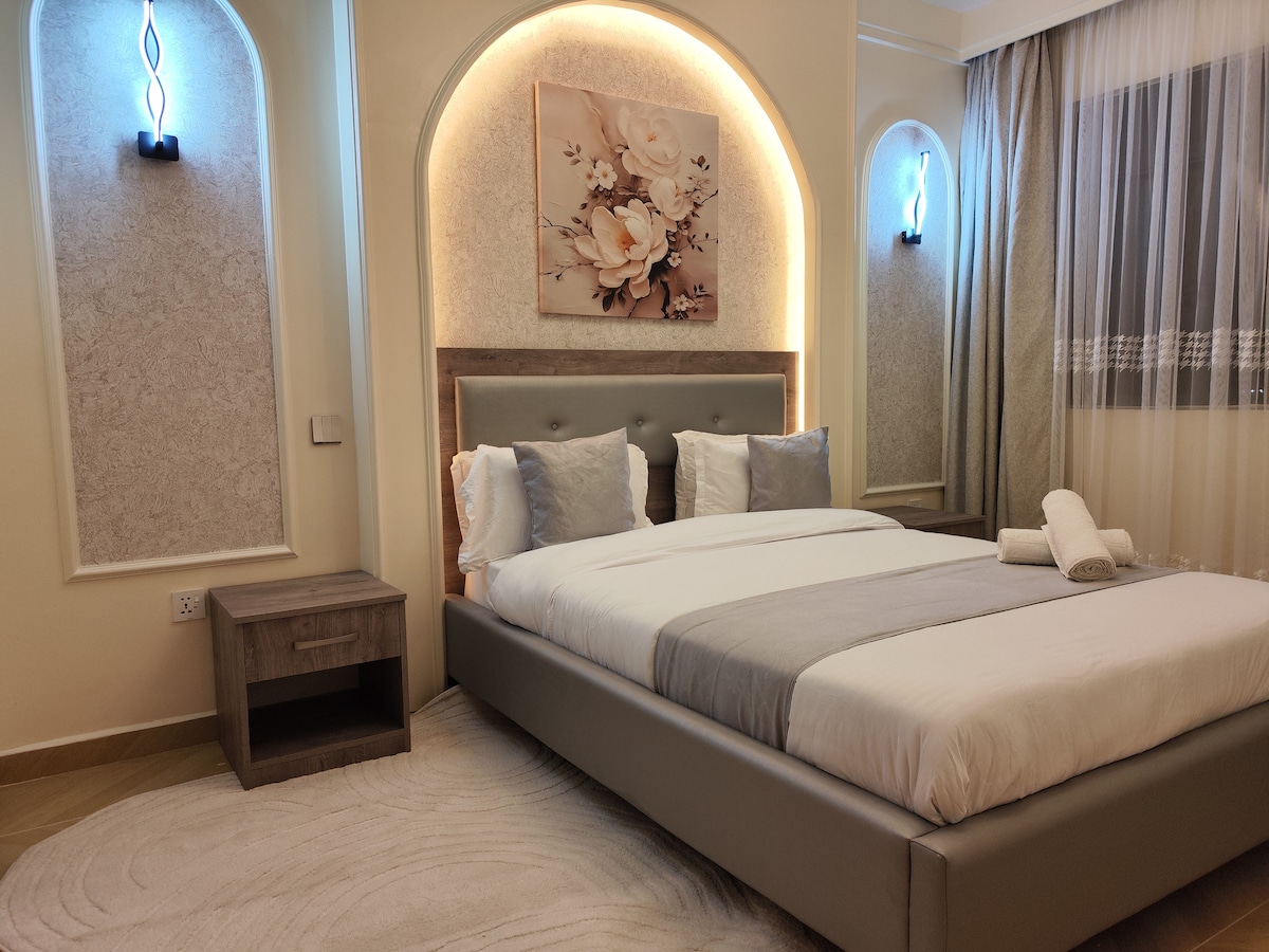 Near JKIA Airport, ideal for long layovers, overnight transit, delayed or cancelled flights. •⁠ ⁠Private apartment, own gated compound (not shared with others) •⁠ ⁠2 bedrooms, 1 bath •⁠ ⁠High speed Wifi 30mbps •⁠ ⁠Fully equipped kitchen •⁠ ⁠Comfortable beds, 10-inch orthopedic mattresses •⁠ ⁠All amenities available •⁠ ⁠2 min from Imaara Mall (gym, restaurants, pharmacy, forex, banks, hospitals, supermarket, laundry, salons, barbers, spa, pubs, apparel, etc.) •⁠ ⁠Spotlessly clean
