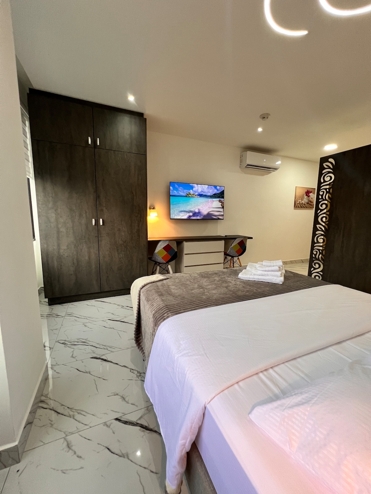 Bienvenido a nuestra encantadora suite, un refugio moderno y minimalista en un conjunto privado. Diseñada para ofrecer comodidad y estilo, cuenta con una cama y sofá cama, baño privado y cocina. Disfruta de la luz natural que entra a raudales a través de tragaluces, creando un ambiente acogedor. Nuestra suite te brindará la tranquilidad y el confort que necesitas. ¡Te esperamos! Pdta: Nos reservamos el derecho de admisión a personas con antecedentes penales.