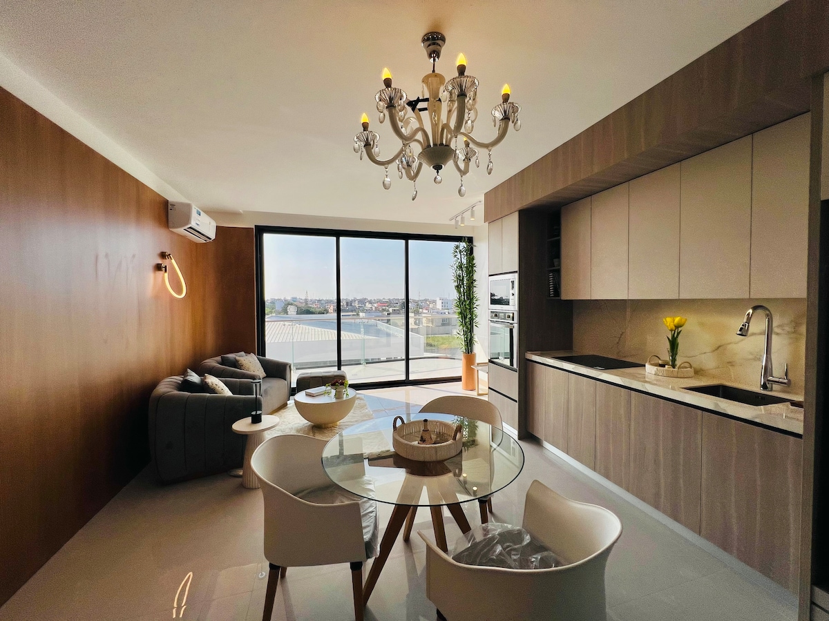 Este moderno y elegante departamento ofrece tres amplias habitaciones de lujo, cada una equipada con camas cómodas: una cama king size, una Queen y de dos plazas. Todos los espacios son completamente nuevos, incluyendo los baños de lujo, que aportan una sensación de relajación y confort. La cocina está totalmente equipada con todos los utensilios necesarios para que puedas preparar tus comidas favoritas. Disfruta de momentos de entretenimiento con los televisores de 80 y 55 pulgadas.