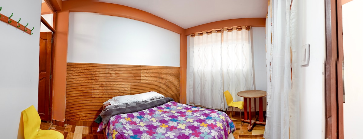 Vive la magia del Valle Sagrado desde esta acogedora habitación con diseño rústico y detalles andinos. Estamos ubicados a solo 5 minutos caminando del complejo arqueológico de Ollantaytambo y a 10 de la estación de tren a Machu Picchu. Disfruta de: - Cama queen size y ambiente silencioso - Baño privado con agua caliente 24/7 - Wifi rápido y escritorio - Estacionamiento gratuito Ideal para parejas, viajeros solos o amantes de la historia que buscan tranquilidad y conexión con la cultura local.