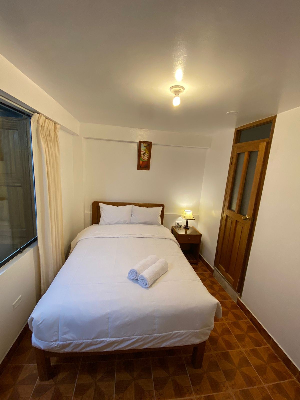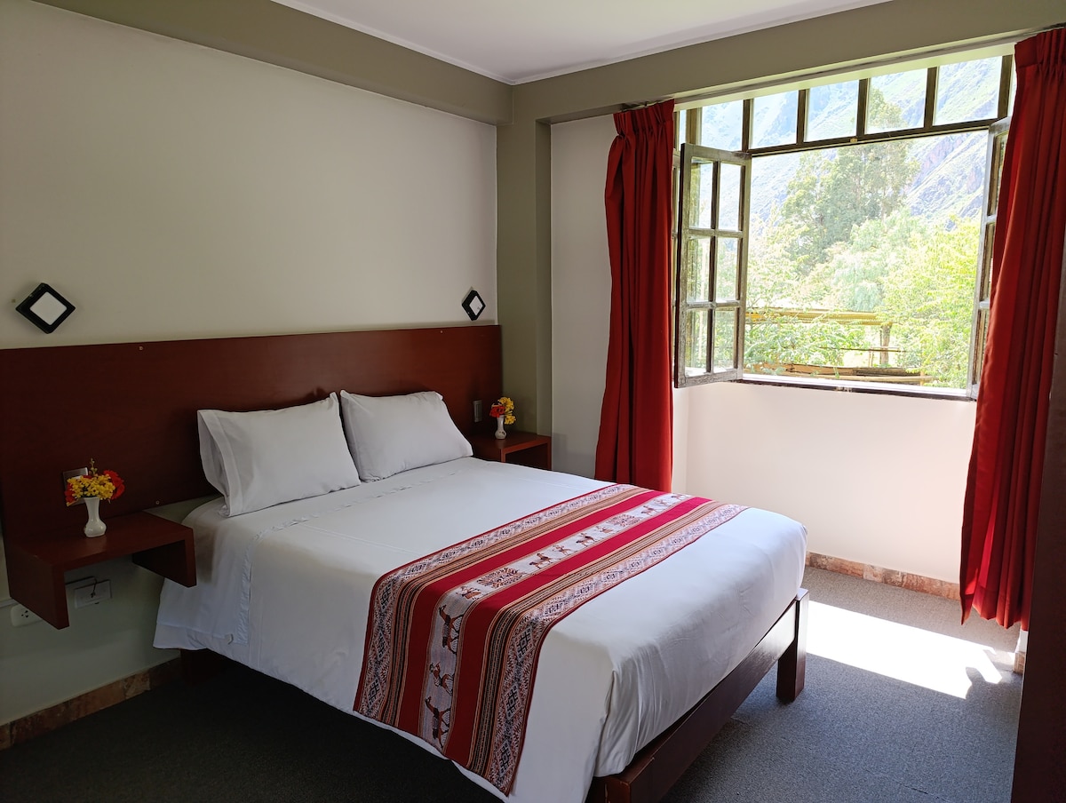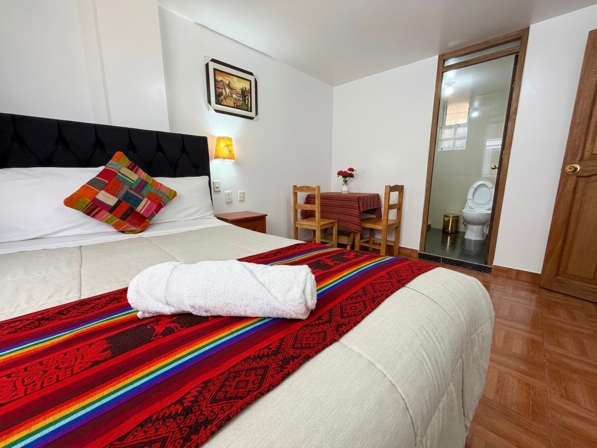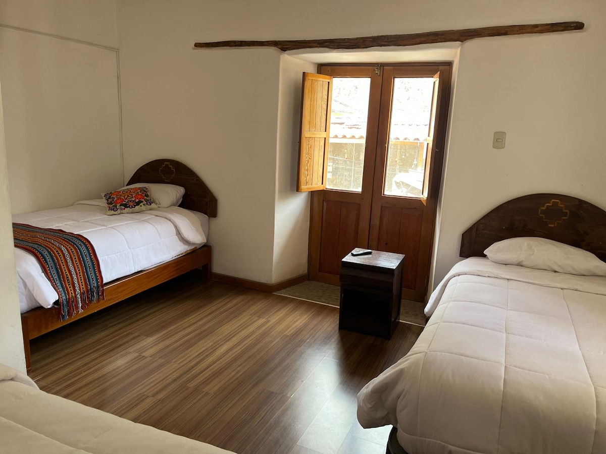 Quiet and well-located hotel in Ollantaytambo, just a few minutes from the Main Square and very close to the train station, with vehicle access right to the door. The interior, peaceful room with a double bed (1.35 m), private bathroom, and 24/7 hot water. Wi-Fi, cable TV, heater, and kettle, towels, shampoo, and soap. We offer a beautiful terrace with great views, shared kitchen/dining area for guest use. Breakfast included (box breakfast available for early departures). Ideal for 1–2 guests.