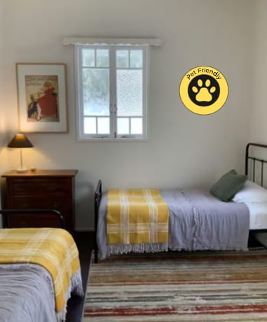 Once a 1950's built carport, now a cosy cabin within a garden. It's unique, it's artistic, it oozes creativity and it was built almost entirely by us. The main room features a comfortable queen bed, a Smart TV, mini fridge, microwave, coffee machine, toaster and kettle, and a few other appliances. Through the french doors your find a small outdoor cooking station, sink and a bar. A few metres further into the heart of the garden you have your own cute little pergola with a table for two.