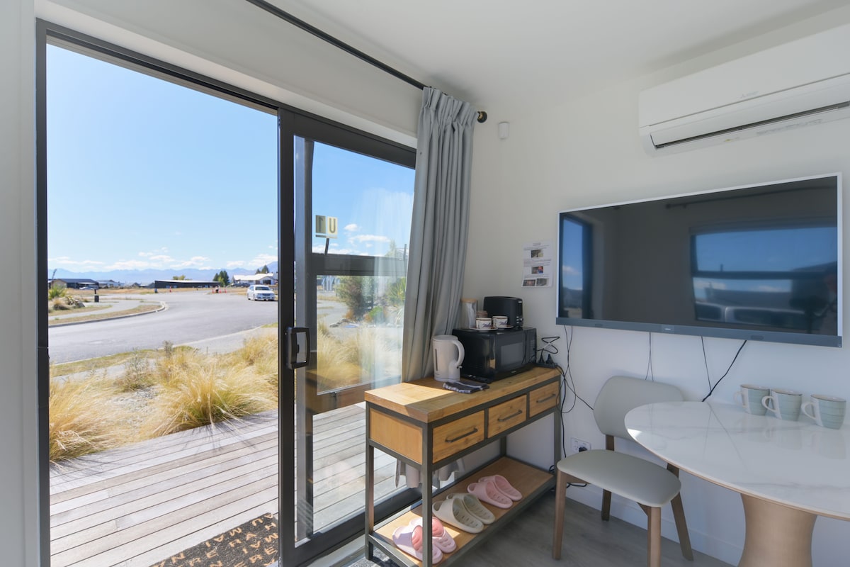 Great for quick and simple stay at a tiny unit in Lake Tekapo! The private guest room (29sq) which is completely separated by a wall and a locked door from owner's space with own entrance, a bed room, a living room, a bathroom and kitchenette. No kitchen! The space is allowed staying up to 2ppl. Not acceptable staying with small kids. We provide a room with a king-size bed.