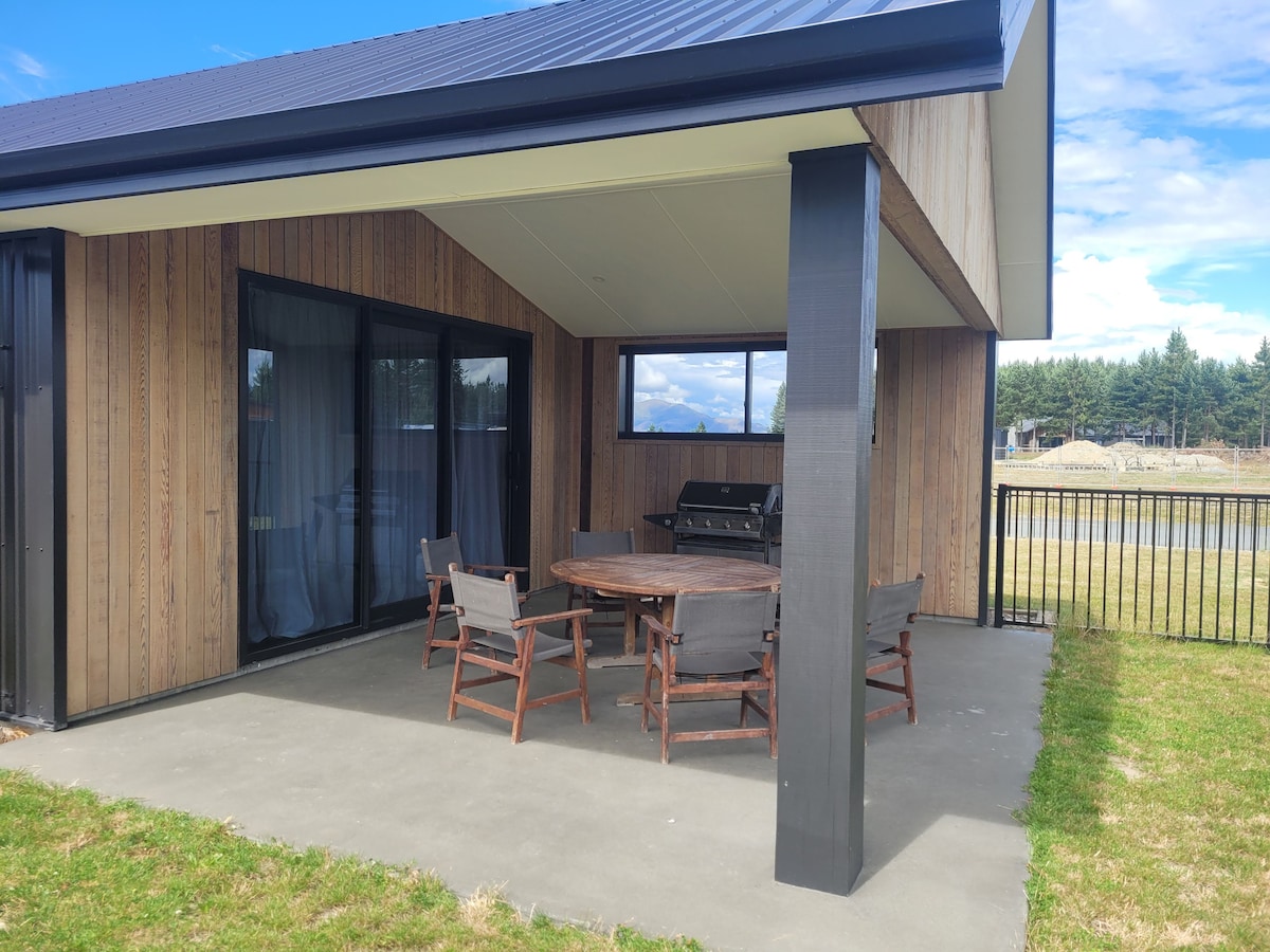 Stay in this beautiful, luxurious two-bedroom chalet-style home on the outskirts of Twizel — winner of the Luxury Holiday Home Award 2025. With breathtaking, uninterrupted views of the Ben Ohau mountain range, Antlers Rest has been furnished and decorated to the highest standard. The modern yet rustic interior creates a warm & welcoming atmosphere from the moment you step inside. The open-plan living area is air-conditioned and offers both a heat pump & a log burner, ensuring year-round comfort.