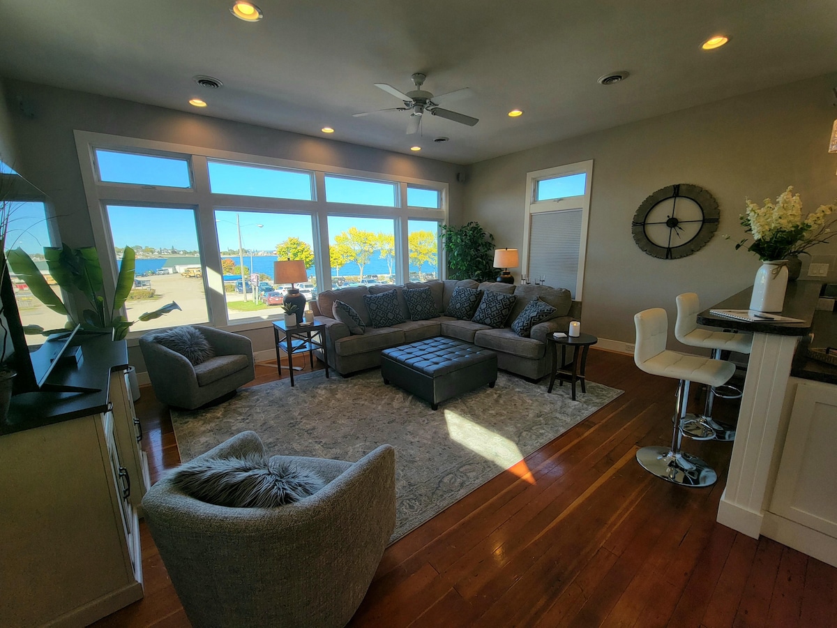 Located downtown St. Ignace above bay pharmacy. Directly across the street from the Marina with Beautiful views of Lake Huron and Mackinac Island! Centrally located within walking distance of attractions, boat lines to Mackinac Island, Bars, and Restaurants. Access to main ATV/Snowmobile trail.