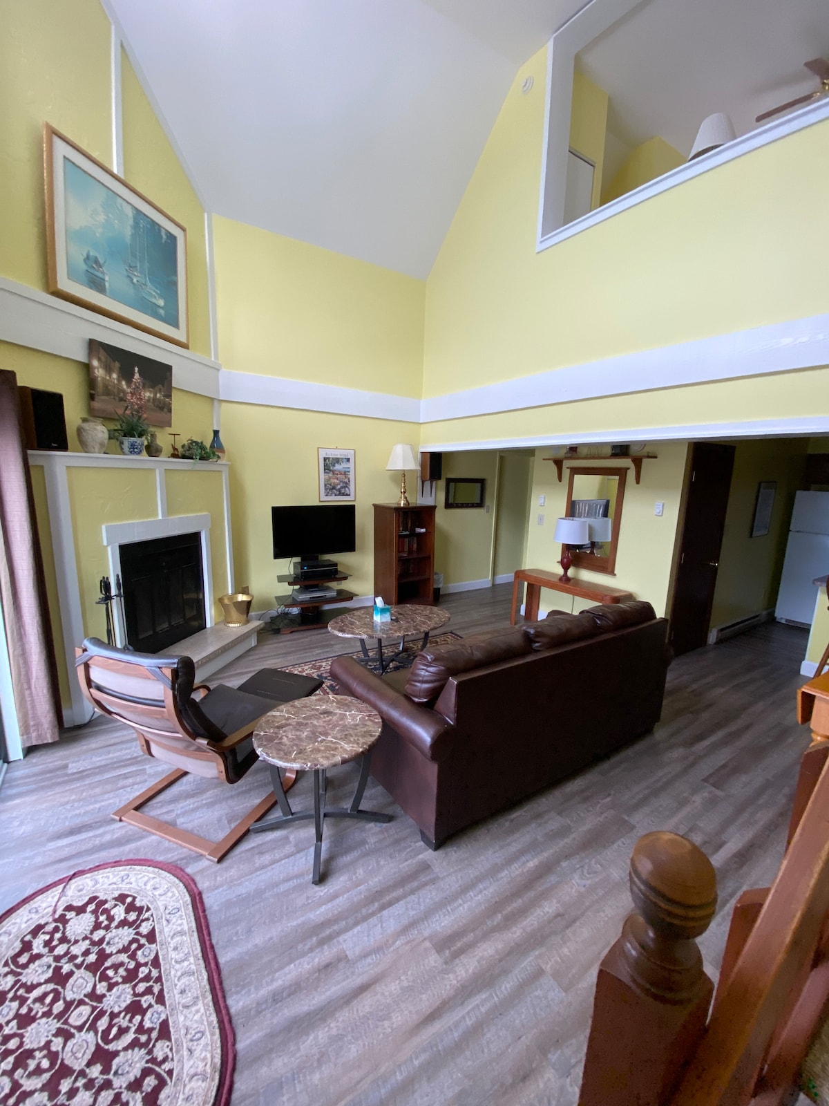 Located TWO MILES from town. 202 Applewood is a one bedroom condo, second floor unit(no elevator) provides a peaceful home away from home. NEW FLOORS AND WASHER/DRYER! Full kitchen for cooking your own meals, or walk 2 minutes to Woods Restaurant. The private deck offers views of beautiful Mackinac sunsets! The loft style bedroom has a queen bed and a second bathroom. There is also a sleeper sofa for an extra bed option. No pets allowed. Bike rentals available on site.
