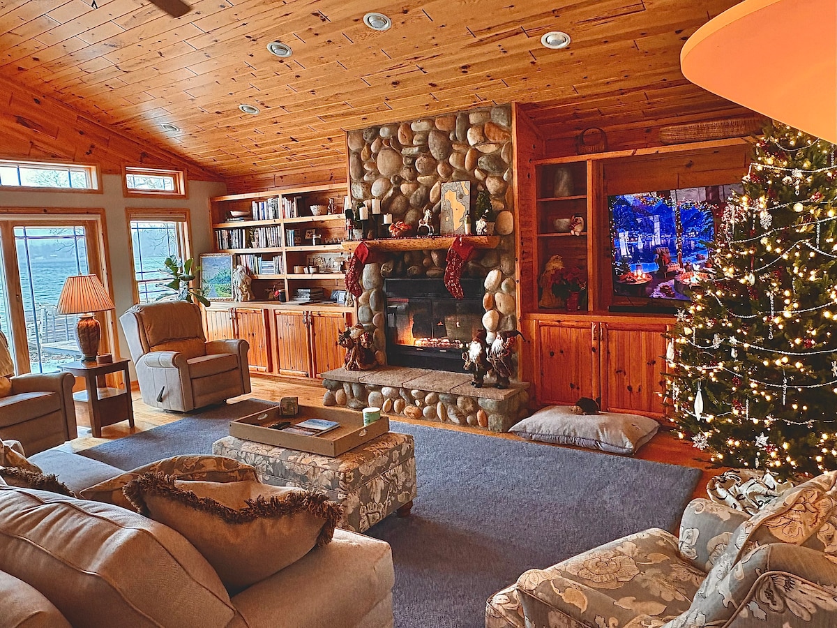 Enjoy the coziness of a bygone era while staying in this 1940s quaint, storybook log cabin. The Hawks Nest has been lovingly restored to its original glory while having all the modern-day amenities woven through its clean 380 sq. ft. space. Retreat to the spacious covered porch to relax and view the acre-and-half property leading down to 100ft of 6Mile Lake frontage. Star gaze while relaxing in the comfortable, Amish-built gilding chairs around the spacious, paver fire pit area .