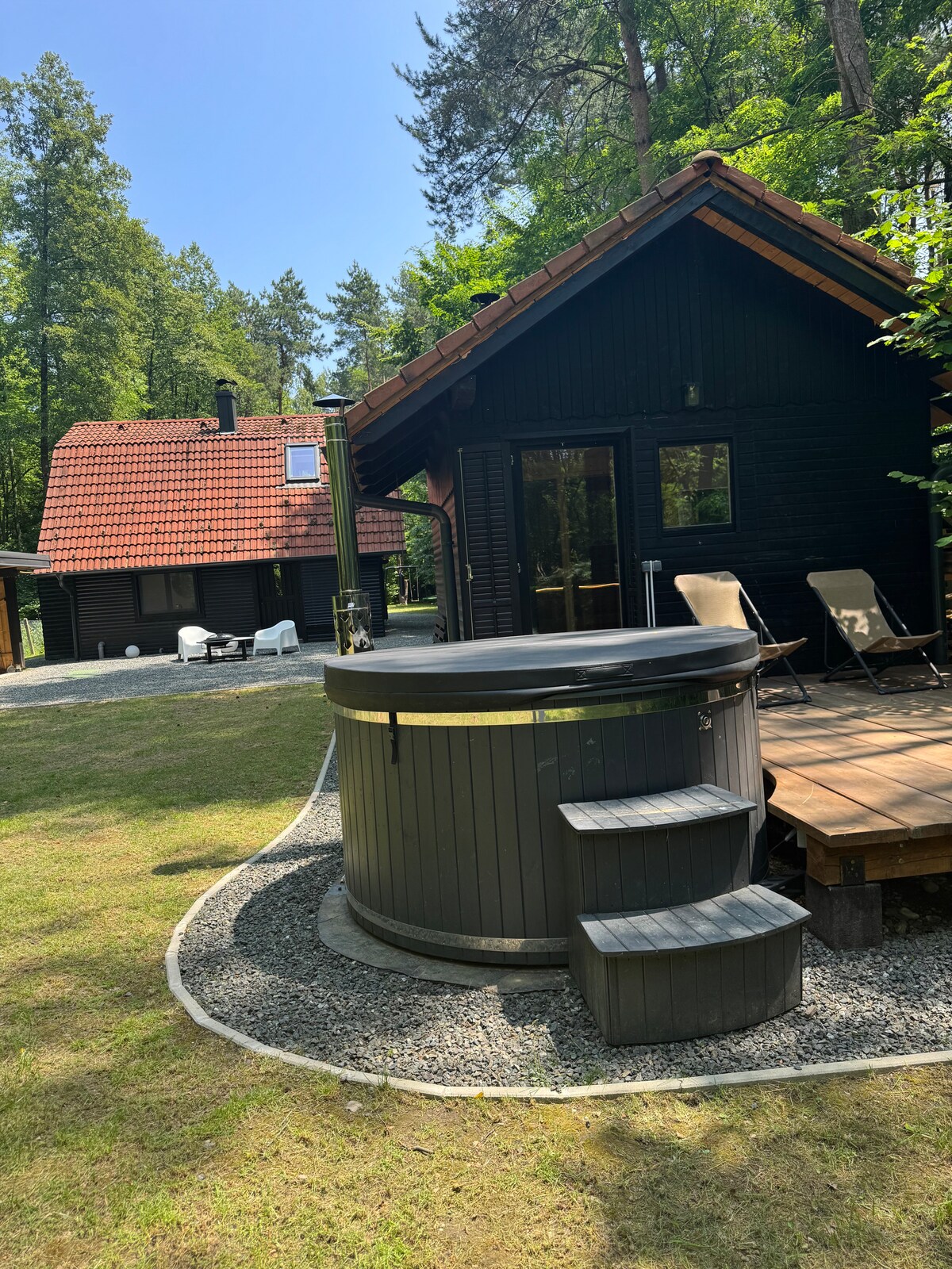 Nestled deep in the forest, our lodge offers total privacy and peace. It has two bedrooms, two bathrooms, and a wellness area with hot tub, sauna, and cold shower. Outside, enjoy a fire pit and a private playground with zip line, trampoline, swings, boxing bag, and off-road go-kart — fun for both kids and adults. A perfect escape to relax, recharge, and reconnect with nature.