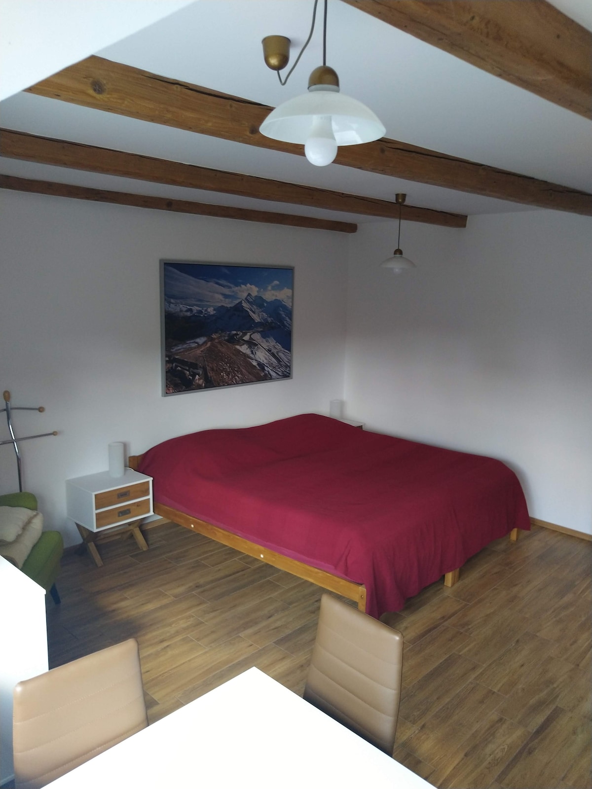The new air-conditioned attic apartment features a double bed and a sofa bed that provides two additional sleeping areas. Includes a fitted kitchen, bathroom with shower, washing machine, hairdryer and iron. The whole apartment is covered with high-speed wifi. Cable TV is available, including HBO. Nearby is the restaurant Svatoboj, food, a popular cycle path with beautiful nature and one of the best wellness in Brno - 4comfort. We offer self-check-in!