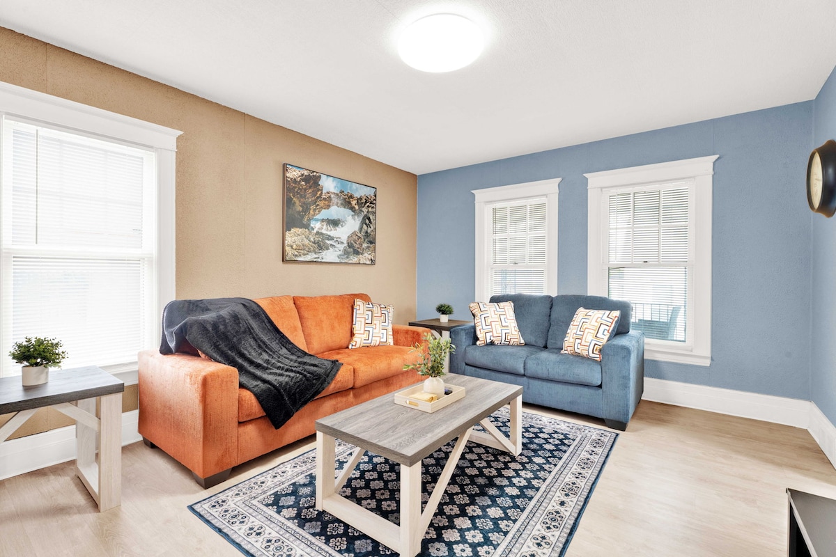 Our historic apartment located in Central Downtown Richmond is a perfect stay for all occasions. Built in the 1800s this space has so much character and history. Decorated in retro vintage/ boho decor you’ll feel nostalgic and at peace while being here. The buildings downtown are beautiful and the view of Main Street will make you feel like your in a big city while still being in this quaint busy little town with so much to offer! Walking distance to bars, restaurants, and so many cute shops.