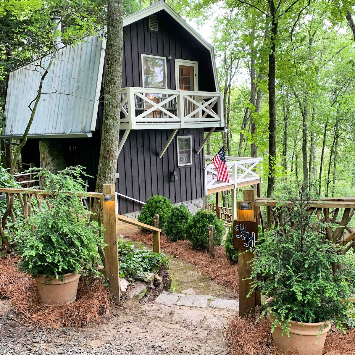 迷人的 1840 年代山间度假胜地 + 小径和瀑布