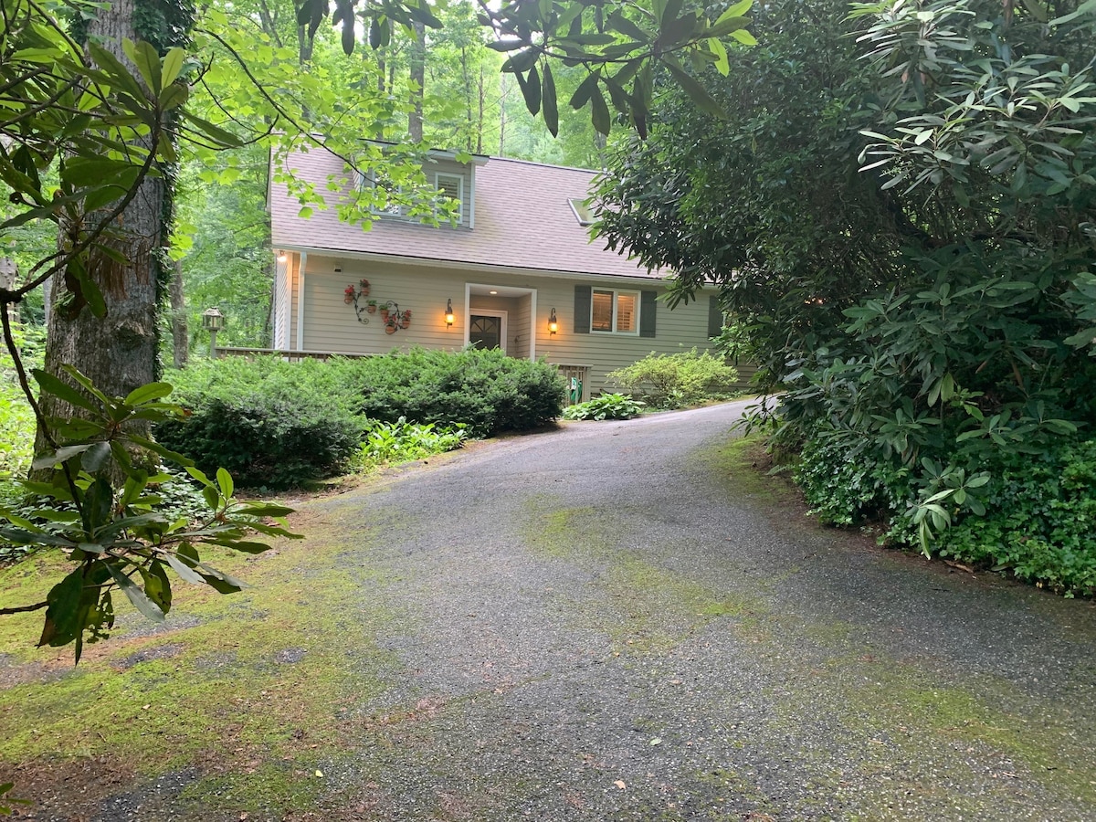 At 4000+ feet & only a 10 min walk to town on the Rhododendron Trail. Totally renovated 2017!! Light & sunny 3 bed/2 bath, 750 sq. ft. Originally built by my wife's g-grandmother in the 1940's. Floor to ceiling shiplap, 17 ft. ceilings, hardwoods, reclaimed barn wood, custom fixtures, heated marble/slate bath floors, tankless water heater, gas fireplace, porch, Wifi, TV, washer/dryer, kitchenette. Beautiful gardens! Classic Highlands charm with modern comforts! Hike, fish, shop, or relax!