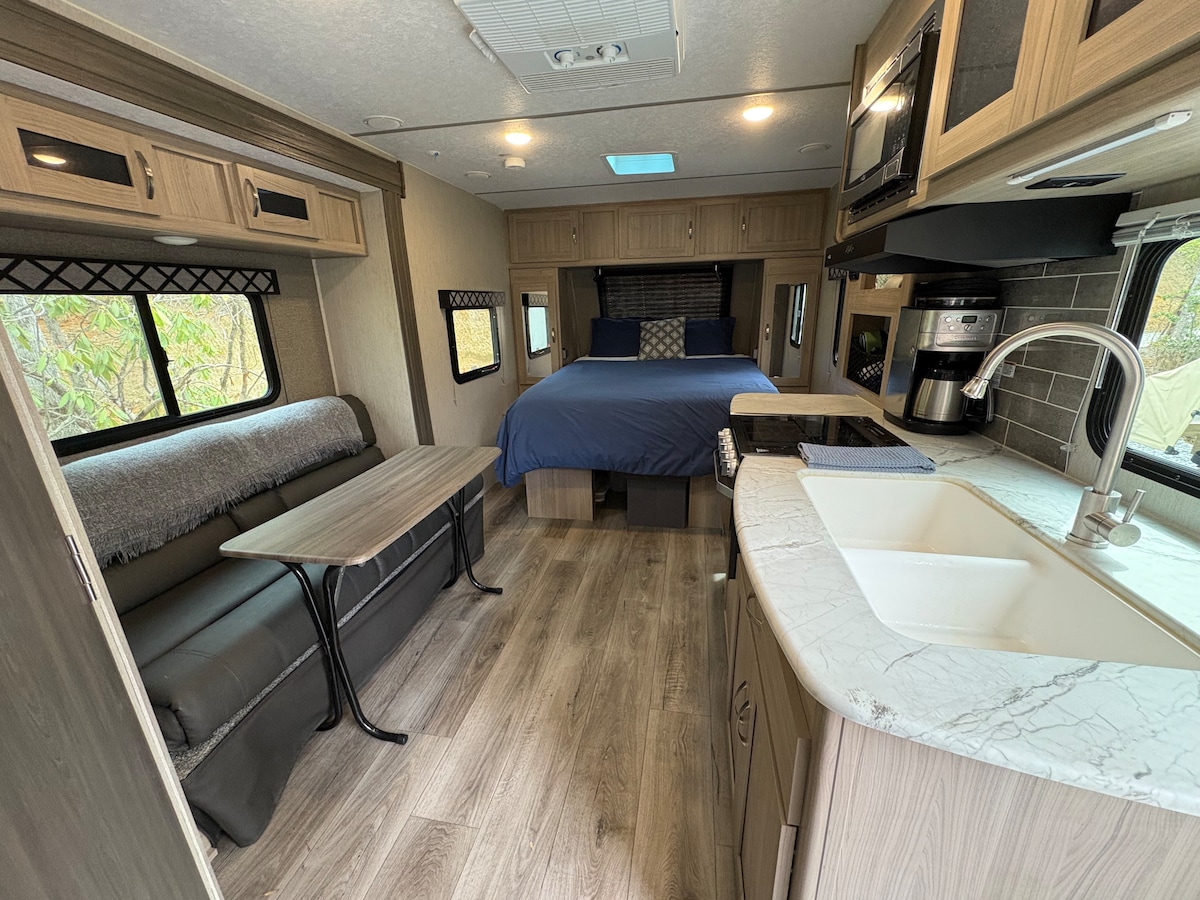 Get away from it all when you stay at our private retreat overlooking a 40 acre mountain meadow. You will have all the amenities of home in this 35 foot luxury camper/RV. Camper has full water, power and septic hookup. Our peaceful getaway is 0.5 mile from Lake Chatuge, 3 miles from Jack Rabbit Mountain biking and trails and 8 miles from both Hiawassee, GA. and Hayesville, NC. Come and enjoy the peace and quiet of the mountains or use this as your jumping off spot for a great adventure.
