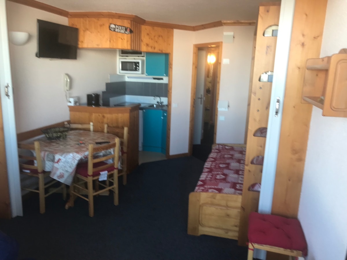 Joli studio de 24m2 divisible en deux parties avec une petite terrasse exposée plein sud ! Magnifique vue sur la montagne au centre du domaine skiable de paradiski. Situé à LA PLAGNE 1800, à 200 m des pistes, vous profiterez été comme hiver des multiples activités proposées. Idéal pour deux personnes et possible pour 4 personnes. Est ompris dans la location une place de parking couverte. Aux dates d'ouverture de la station été et hiver vous aurez accès à la piscine chauffée.