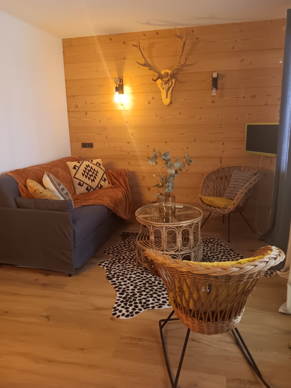 Profitez d'un logement élégant et central, aux pieds des pistes. L’appartement a été entièrement rénové. Vous pourrez apprécier son orientation sud, ensoleillé et vue montagne. Tranquillement assis dans le canapé, la montagne vous fera les yeux doux. Un balcon avec table et chaises est à votre disposition afin de prendre son p'tit déjeuner, dîner, ou boire une petite collation avec les yeux rivés sur le paysage qui vous entoure. (sans pour autant en oublier vos compagnons de séjour 😉 )