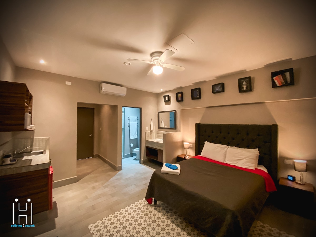 Enjoy the experience of staying in the heart of Monterrey. Light & comfortable studio-sized apartment with a queen bed, sofa bed, wifi, HD TV, bathroom and fully equipped kitchen with fridge and everything you need. Near the metro, train and important streets, you’ll be connected to the whole city within minutes.