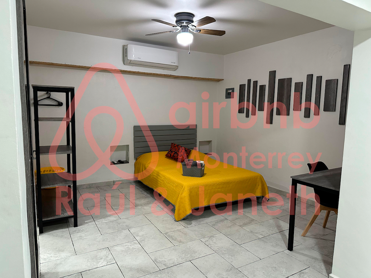 Departamento entero a una cuadra de el Paseo Santa Lucia, Cerca Cintermex, y Barrio Antiguo, con internet, para cuatro personas con dos camas matrimoniales, baño completo, aire acondicionado frio/calor, TV, cocina, barra comedor, refrigerador, estufa eléctrica de inducción, microondas, sartenes, platos, utensilios, entrada autónoma con clave de acceso