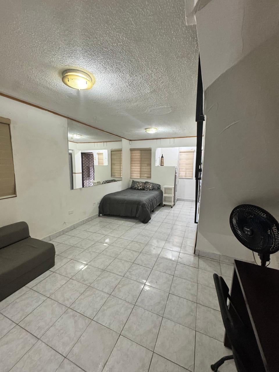 Departamento en segunda planta, con entrada independiente, baño privado y cocineta. Cuenta con frigobar, comedor, 1 cama matrimonial, mini closet y aire acondicionado frió y calor. Con cafetera, microondas, plancha y secadora de pelo, utensilios de cocina, vajilla y blancos. Preparado para 3 personas. Seven Eleven a 50 metros, Universidad Mederos a 2 kms, Walmart las Torres a 2 kms, ITESM a 7kms, estacionamiento disponible alrededor de la cuadra.