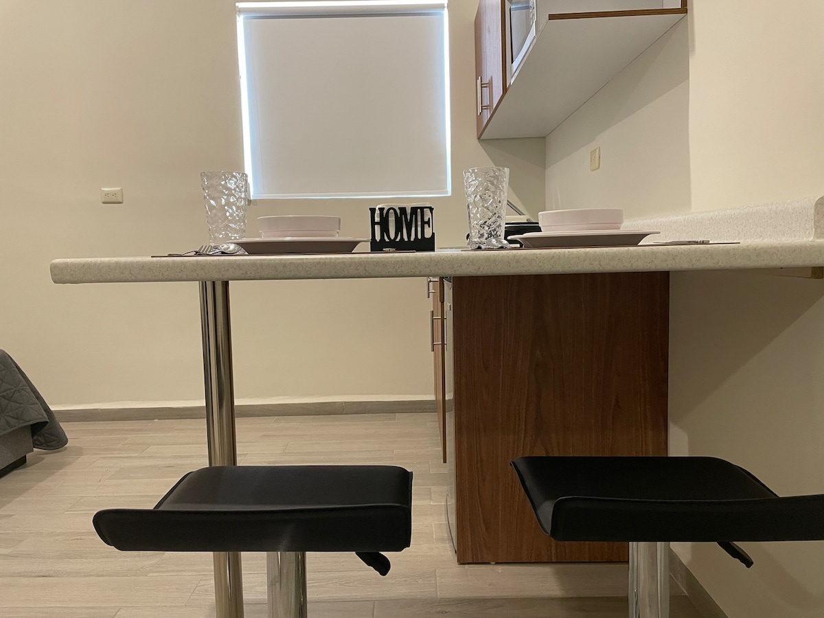 Hermoso depto amplio con todas las amenidades. Climatizado, cocina, lavasecadora, escritorio para trabajar. Varios balcones. Un baño está fuera de la recámara y el otro dentro de la habitación. Se aprecia la vista a la ciudad. Restaurantes y centro comercial muy cerca del depto. Cuenta con terraza privada (preguntar disponibilidad) en el último piso con vista a la ciudad por si desean disfrutar de la vista o hacer carne asada. Ideal para cena romántica. Cuenta con tinaco