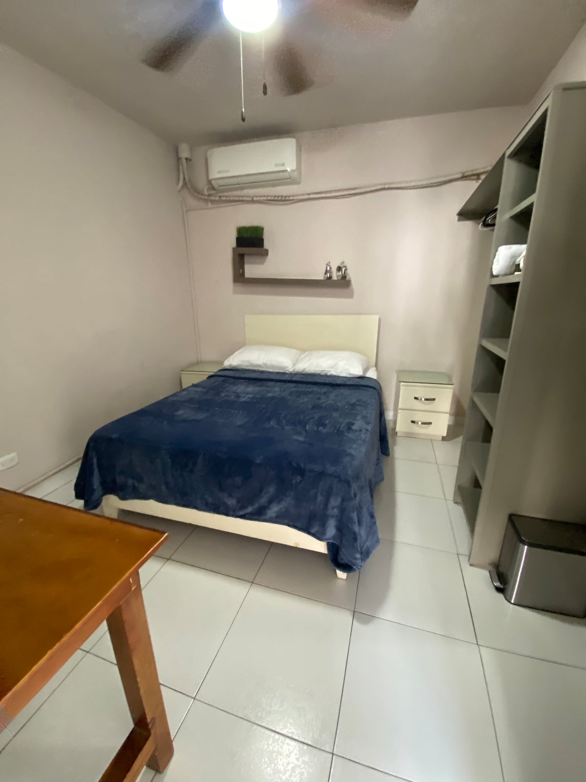 Departamento amueblado completamente nuevo en el centro de Monterrey. A media cuadra de la Alameda Central. Disfruta de habitación cómoda con cama matrimonial, baño privado y cocineta equipada (parrilla, minirefri y utensilios). Confort con clima frío/calor y ventilador de techo. Acceso con chapa digital. Ubicación Clave: CAS (huellas visa) a solo 10 min a pie. Paseo Santa Lucía a 10 min en carro. A solo 14 minutos de la Arena Monterrey. IMSS Unidad Médica de Alta Especialidad No. 21 a 5 min