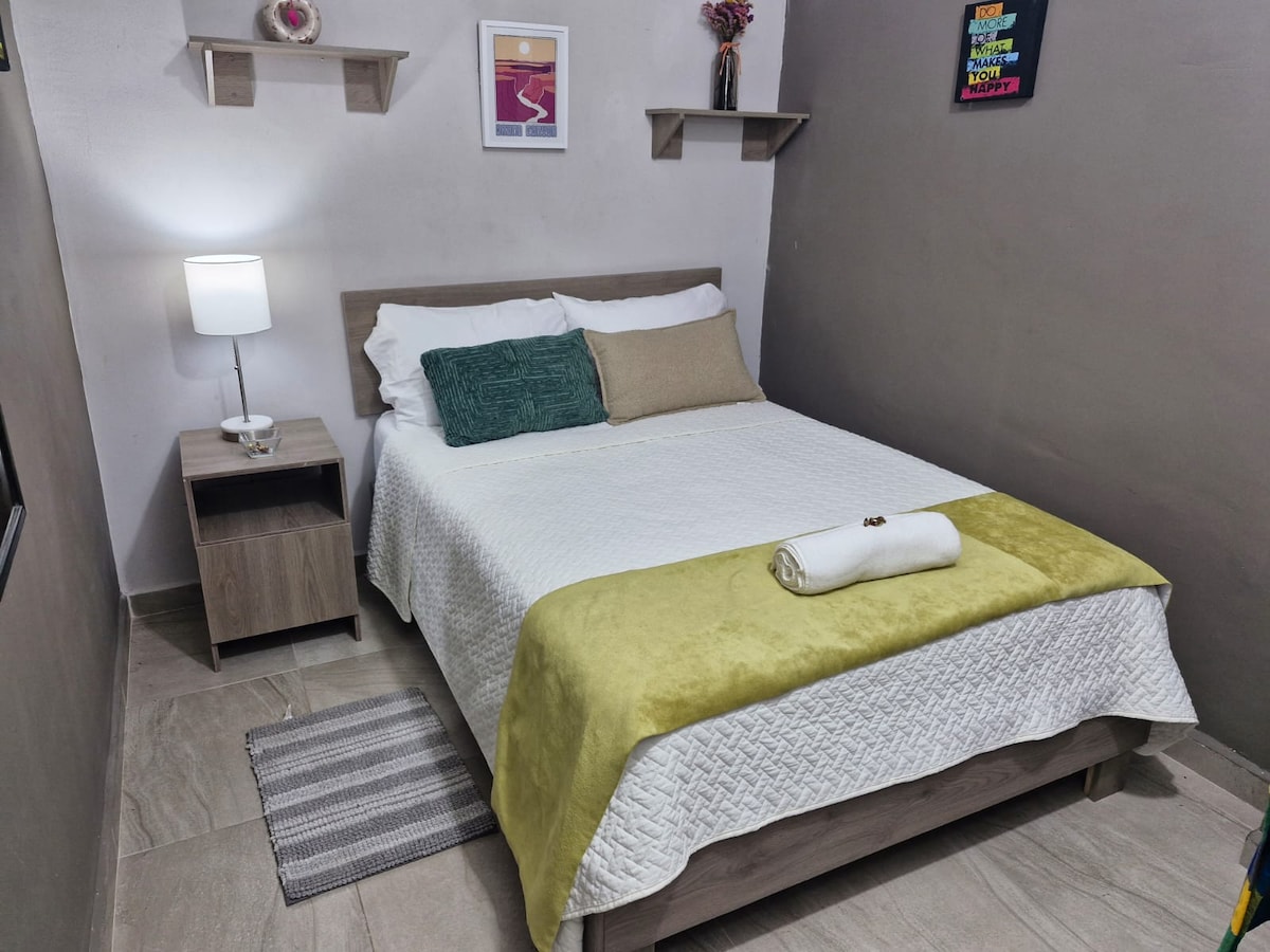 Ubicación ideal para visitar: A 4 min de Cintermex A 3 min cuadras de Santa Lucia A 4 minArena Monterrey A 6 min de Barrio Antiguo A 5min de la central de autobús A 7 min Estadio Banorte CAS - Centro 7 min * Cama Queen * Wifi * Café * Cocina equipada + abastecida con utensilios * Minisplit * Smart TV * Baño privado toalla, jabón y shampoo Acceso para huéspedes: El departamento es independiente con su propia entrada.