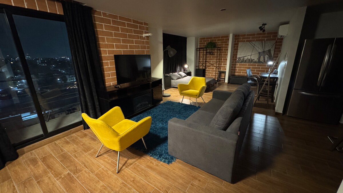 Visita increíble loft en el corazón de Monterrey con un diseño moderno y acogedor totalmente nuevo!Este espacio cuenta con cocina equipada,cómoda habitación con cama de lujo marca Lunna #1 de México,sala de estar,Smart TV con todas las apps de streaming,ubicación inmejorable a pasos de la Macroplaza,Barrio antiguo,Santa Lucía y otras atracciones locales.Transporte accesible para explorar la ciudad.Amenidades Increíbles como piscina, gimnasio,área de cine y zona de cowork oficina para trabajar.