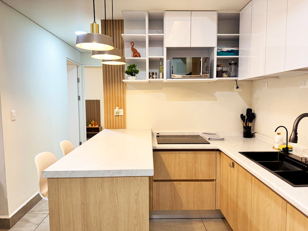 豪华2卧室公寓,加大双人床,带泳池+停车位+健身房