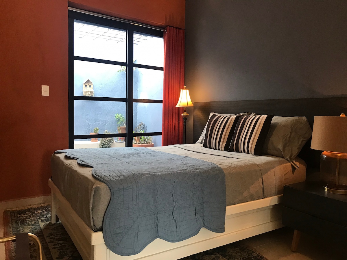 ✨ Enjoy a unique stay in this industrial-style loft with modern finishes, located in the heart of Monterrey. Ideal for couples, business travelers, or friends looking for a comfortable, stylish stay with an unbeatable view of Cerro de la Silla. Relax on the balcony 🌇 while watching the city lights at night, or catch a stunning sunset from the rooftop pool 🏊♂️. The building features 24/7 security, a gym, and shared spaces that elevate your experience.