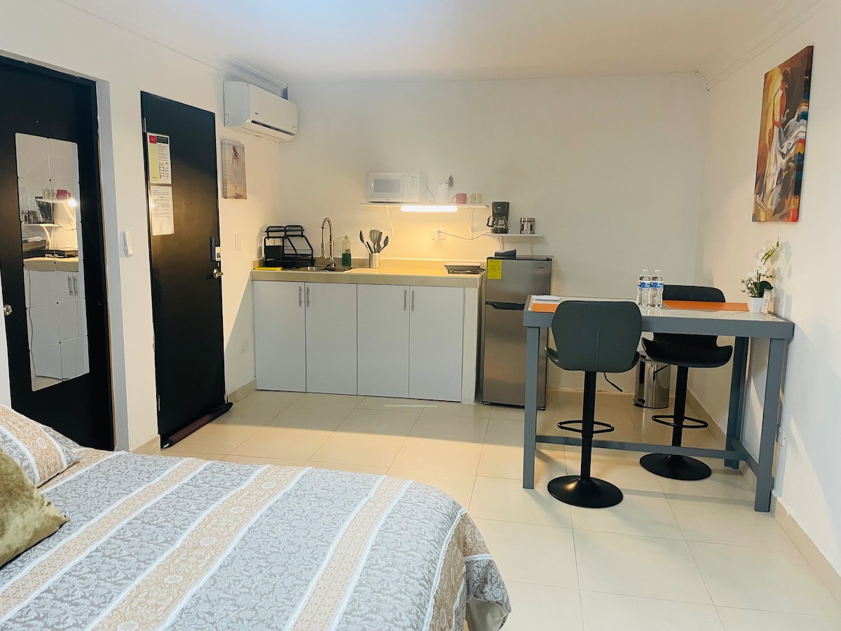 Ubicación ideal para visitar: A 3 min de Cintermex A 5 min de Santa Lucia A 10 min de Barrio Antiguo A 3 min Arena Monterrey A 10 min central autobus Dentro del Alojamiento * Cama Queen * Minisplit * Smart TV * Cama Queen * Baño privado toalla, jabón y shampoo * Café * Wifi Quieres un lugar donde puedas tener todo de forma independiente. Este espacio cuenta con tu propia cocina, baño y área para trabajar. Es como si estuvieras en tu casa o depa. Equipado para estancias largas o cortas.