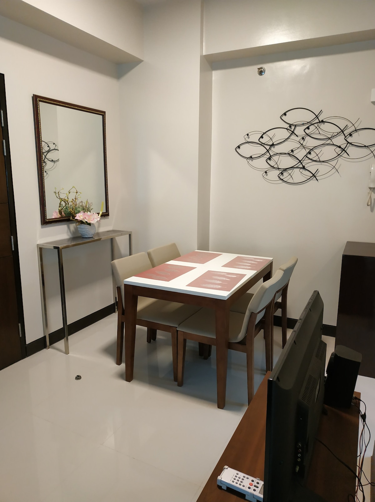 ❌6 pax at all time ❌ NO PETS allowed ✔️Copy of ID & docusign needed to be completed. Welcome to U Bears’ Den Mactan Cebu!🐻 As you step inside, you’ll be greeted by an inviting living area with touches of modern minimalistic design. The view from the living room is both relaxing & captivating, complemented by a brand-new & stylish electric fireplace—perfect for creating the cozy atmosphere of a snowy Swiss Alps retreat. This is truly a one-of-a-kind getaway you’ll find in Mactan Island Cebu.