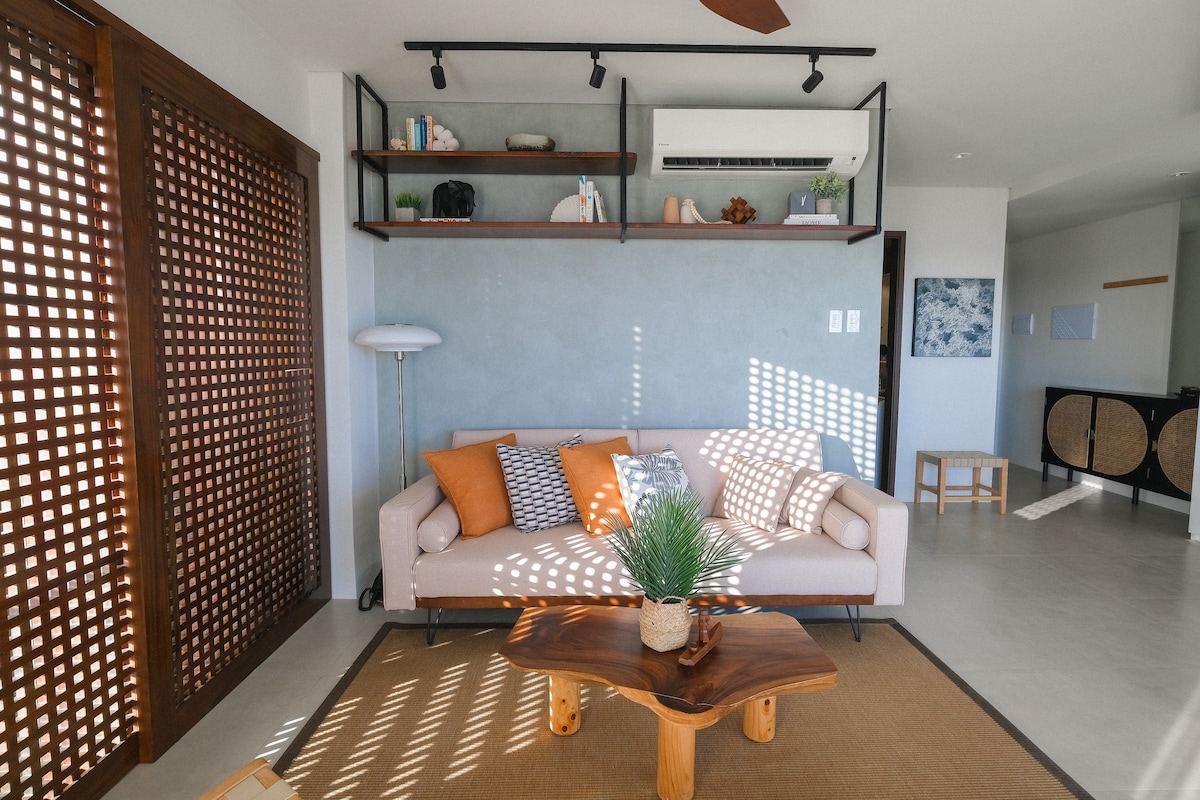 Your home away from home where the gentle breeze meets the soft sands, the sands meet the sparkling sea, and the sea meets the vast ocean under the warm embrace of the sun. Enjoy comfort and tranquility in our 1-bedroom corner unit with a queen-sized bed, a sofa bed for the extra 2 guests, balcony with a day bed to enjoy the breathtaking view. Located in Tambuli Seaside Living Tower D, just 12km from Mactan International Airport. *Minimum of 2 nights
