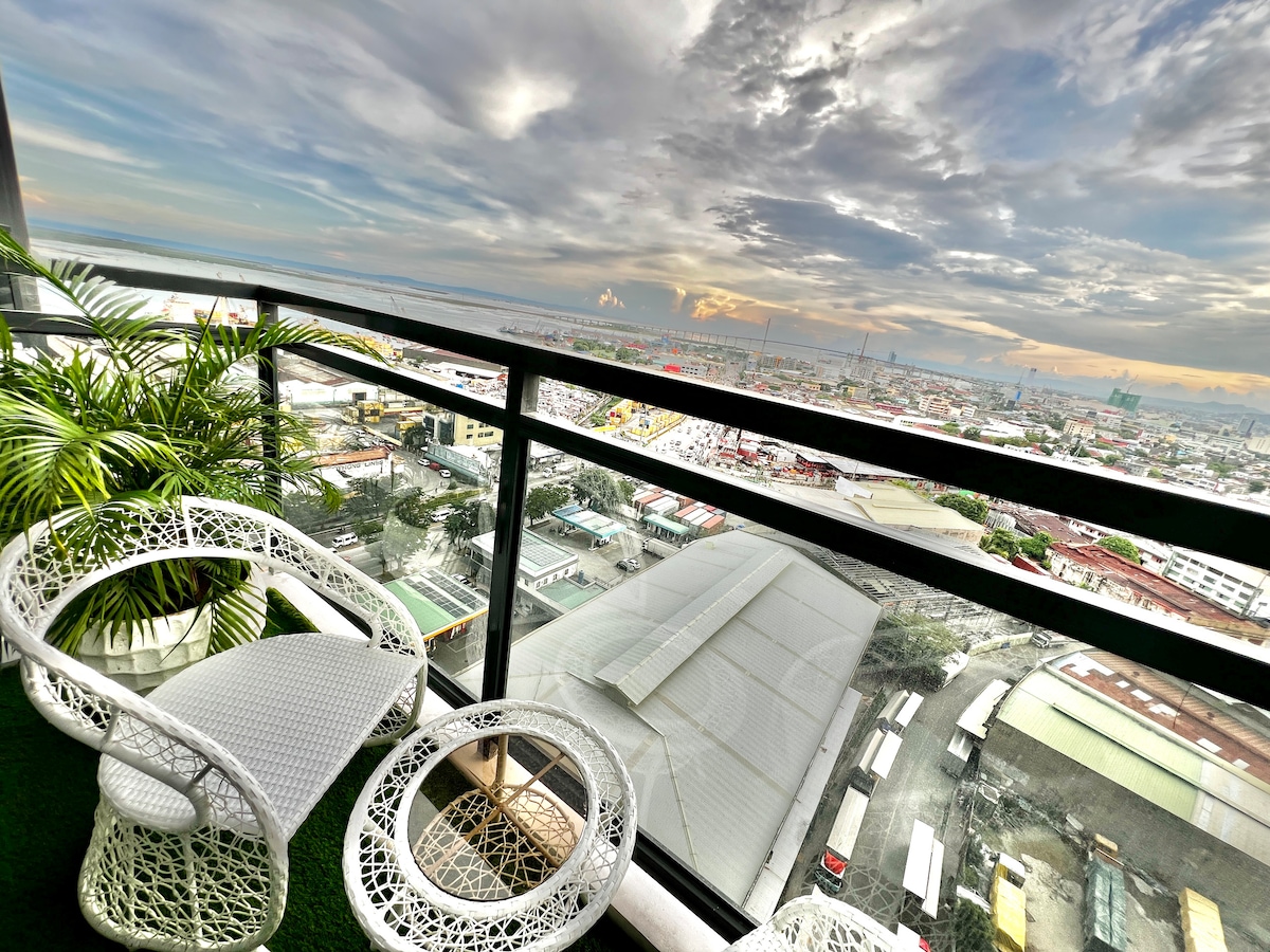 Experience high-end living in this prime 22nd-floor luxury studio at Park Avenue 38, IT Park, offering elegant city and bay views. Good for four people. Enjoy your private cinema projector, plush sofa bed, indoor plants, and germ-killing AC. Features hot & cold shower, full cooking facilities, and daily housekeeping. 7-Eleven is at the entrance, surrounded by the best 24/7 coffee shops and upscale restaurants.