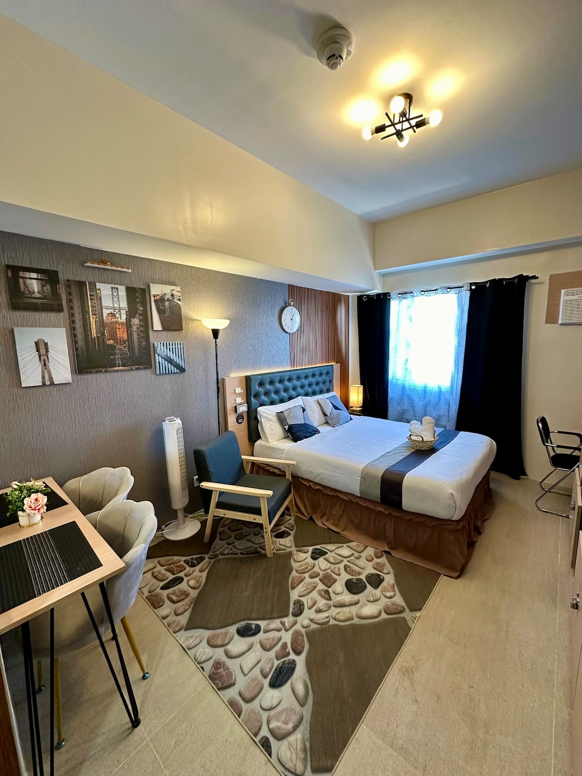Experience high-end living in this prime 22nd-floor luxury studio at Park Avenue 38, IT Park, offering elegant city and bay views. Good for four people. Enjoy your private cinema projector, plush sofa bed, indoor plants, and germ-killing AC. Features hot & cold shower, full cooking facilities, and daily housekeeping. 7-Eleven is at the entrance, surrounded by the best 24/7 coffee shops and upscale restaurants.