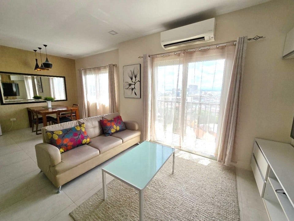 Within the heart of Cebu City- 5 minutes drive to Ayala Mall. Has a small commercial establishment right across the bldg with restaurants, spa and 7/11 convenience store. Furniture & appliances are of good quality and are well taken cared of. Balcony has a beautiful view of the sea & pool. We have stayed here for more than a year so we have experienced how nice the unit is, ourselves. We take extra precaution too by cleaning our unit with the use of a hydrogen peroxide solution.